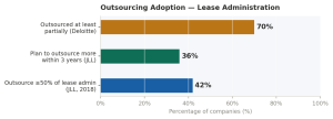 The numbers paint a striking picture. According to Deloitte, 70% of real estate companies have already outsourced at least a portion of their lease administration. Yet an MRI Software survey found that 42% still rely partly on spreadsheets or paper-based processes — and over 10% use spreadsheets alone, with no purpose-built software at all.
